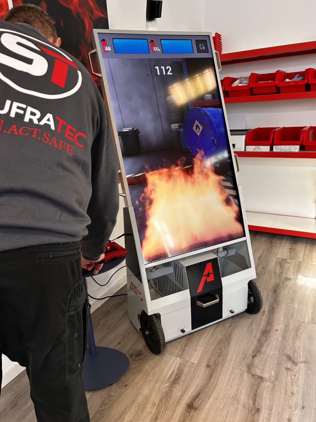 Zum einen einen mobilen Brandsimulator auf Anhängerbasis mit umfangreichem Zubehör, der vielseitige Einsatzmöglichkeiten für praxisorientierte Trainings bietet.